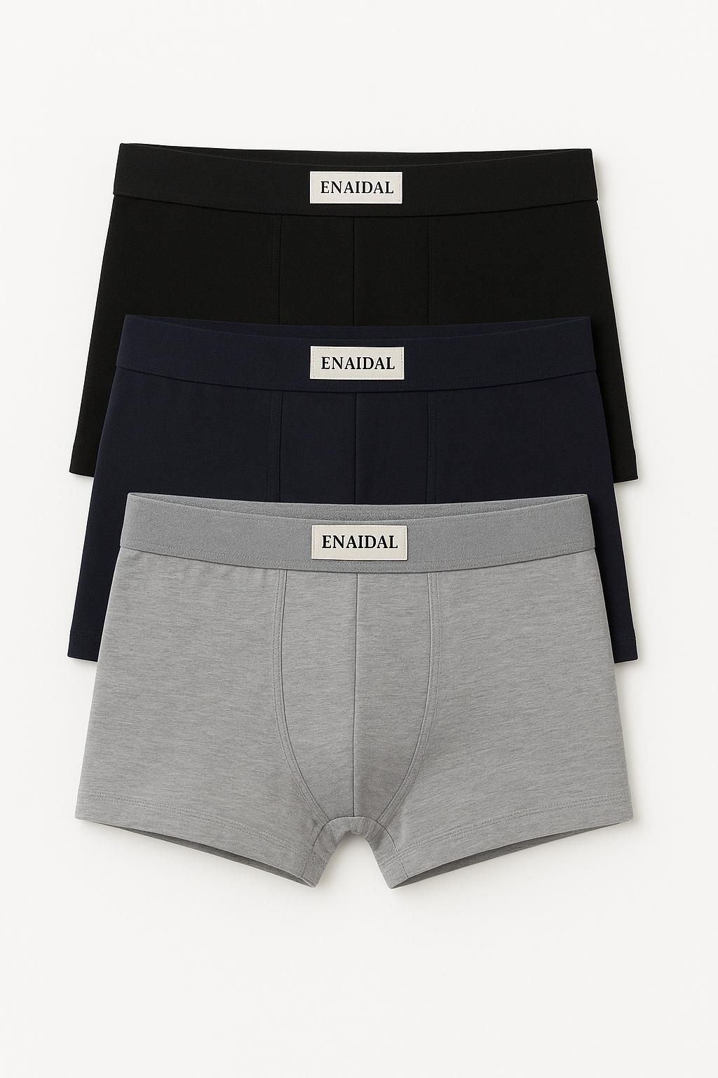Descubre la máxima comodidad con el Pack de 3 bóxers ENAIDAL, diseñados para el hombre moderno que busca calidad, ajuste perfecto y estilo discreto.