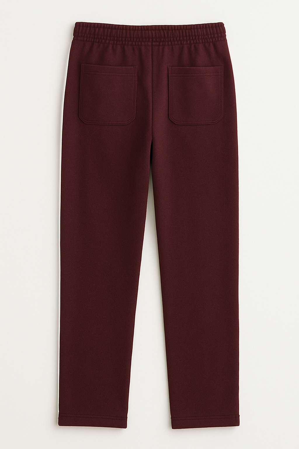 Pantalón Deportivo Burdeos con Franjas Laterales Blancas – Wide Leg Comfort