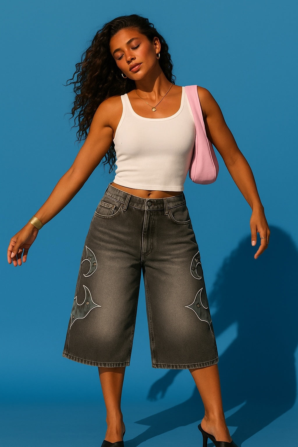 Destaca con este short denim oversize de diseño unisex, inspirado en la estética high-street americana.