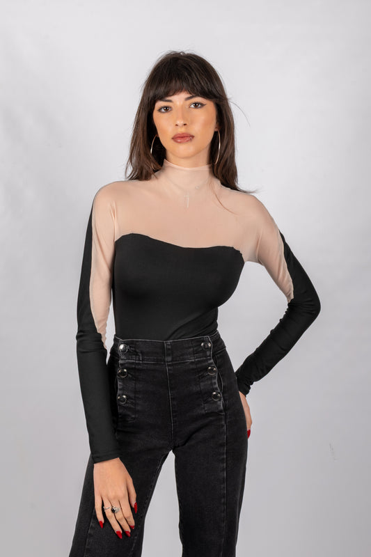 Body de Mujer con Cuello Alto y Detalles Cut-Out – Manga Larga